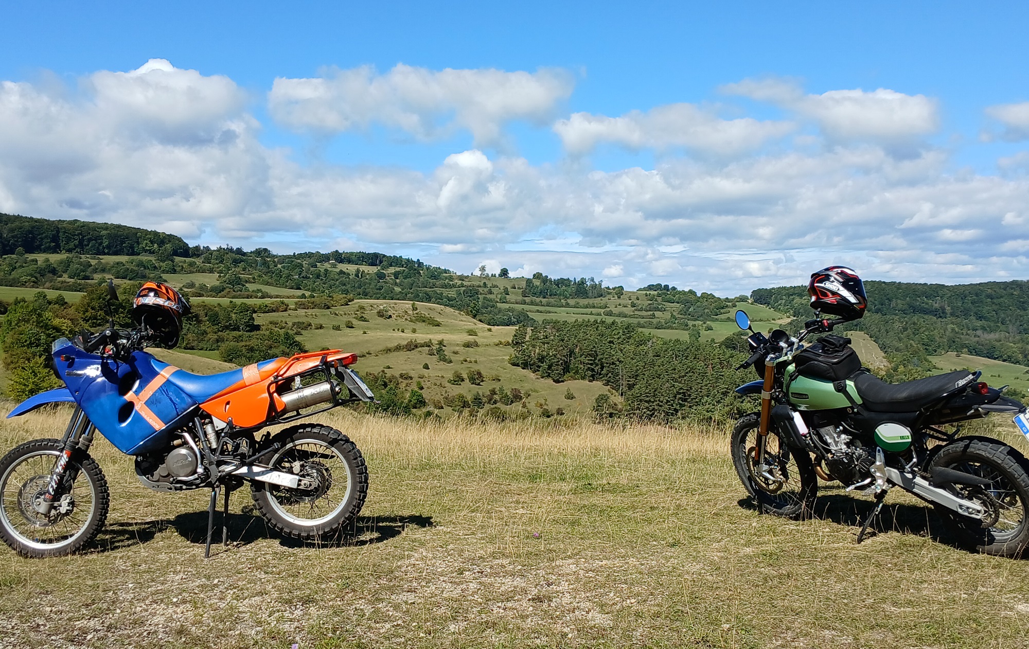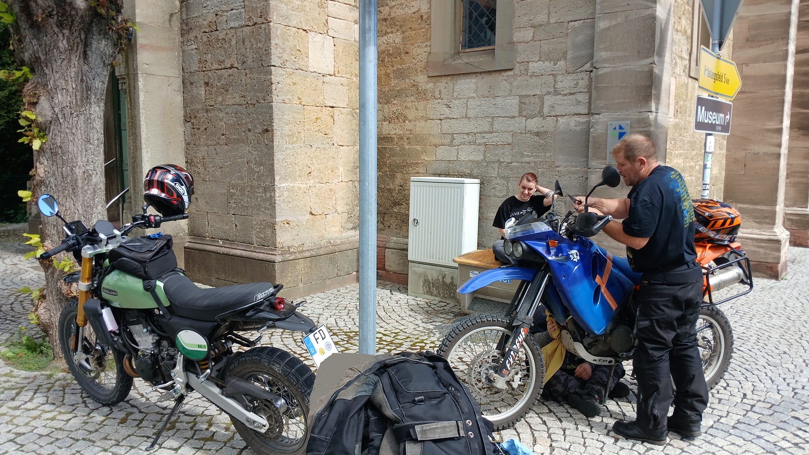 Und wir waren mal wieder mit den kleinen Enduros auf Tour. Meinem Kollegen ist der Gaszug gerissen – wurde unterwegs mit vereinten Kräften geflickt..