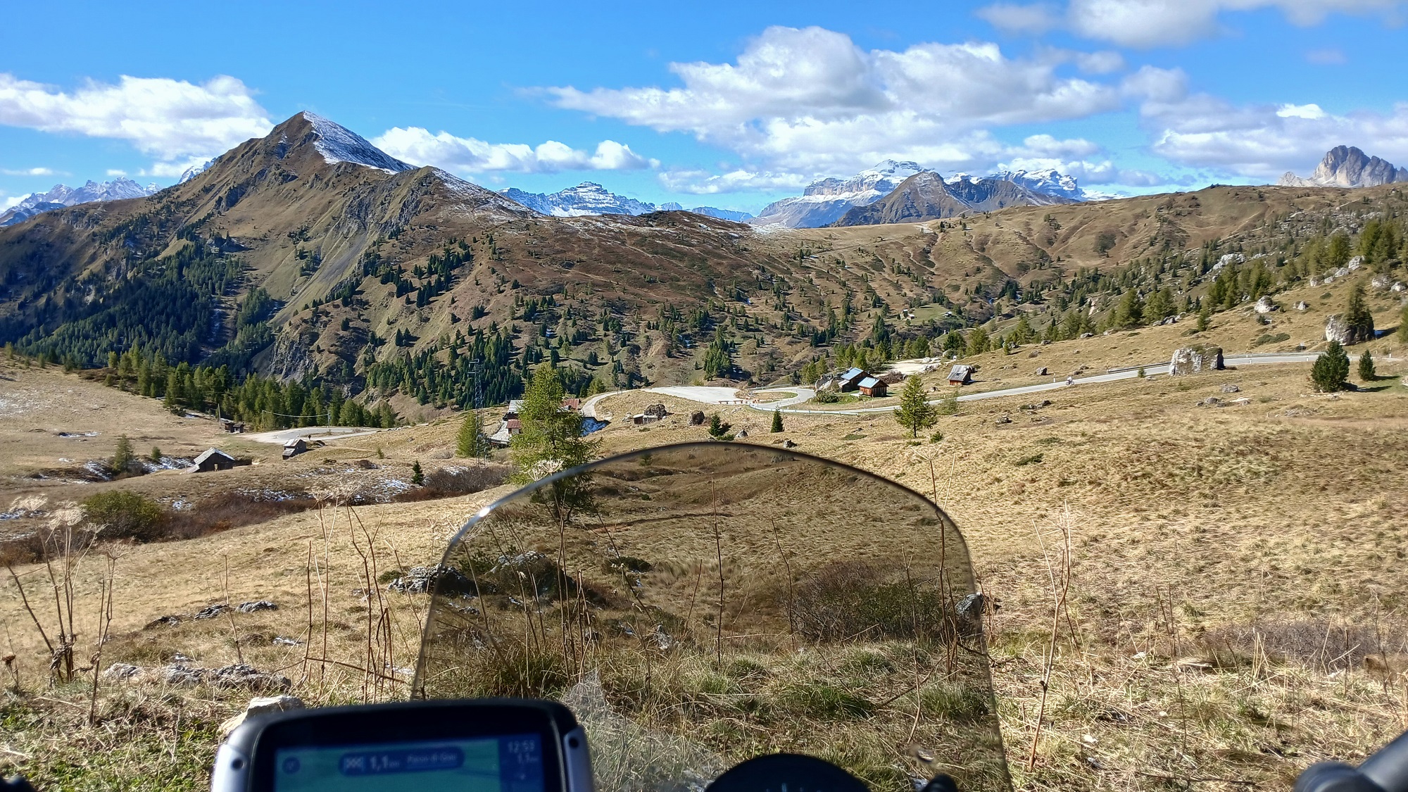 Sonniger Start in Corce d'Aune.. in den Dolomiten angekommen haben wir vor dem Giau bereits schöne, leere, kurvige Straßen über den Passo Duran (1605m) und Passo Staulanza (1773m) mit mega