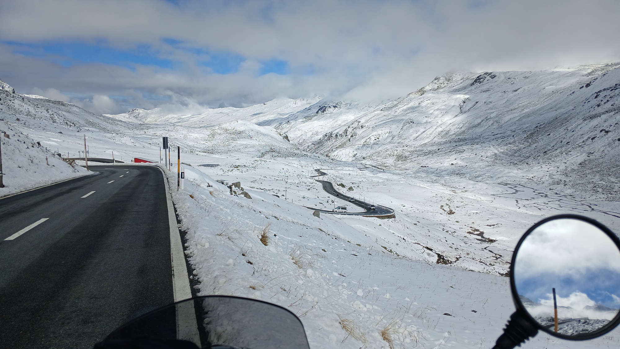 Bei schönstem Sonnenschein fahren wir nochmal nach Italien, über den Splügenpass 2113m: