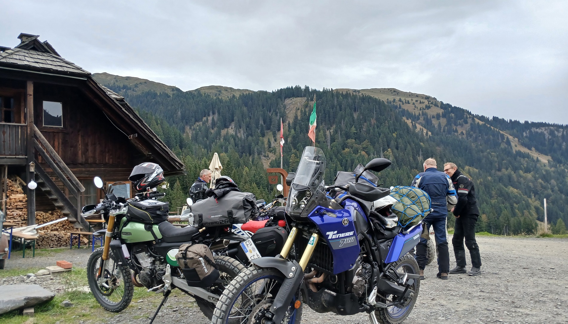 Wir haben inzwischen die Felbertauernstraße und den Gailbergsattel hinter uns und sind in Stranig im Süden Österreichs. Vor uns kilometerlange Schotterwege über die Alm nach Italien – die Stunde der
